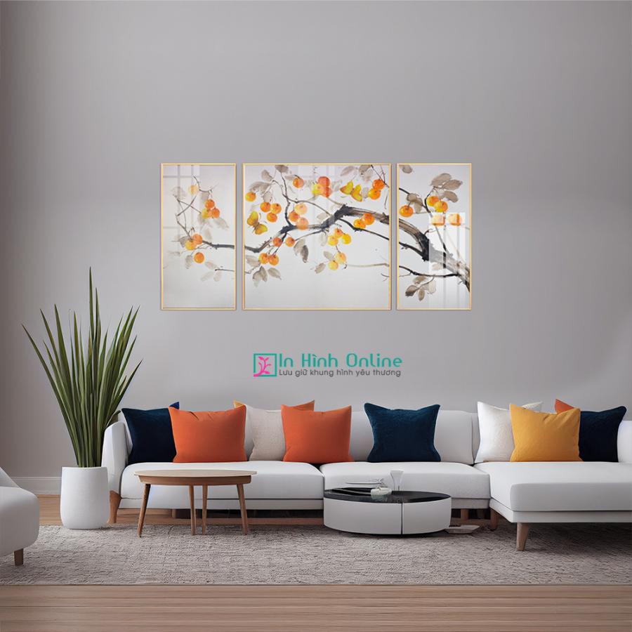 Tranh Phòng Khách Bộ 3 tranh cành hồng decor phòng khách sang trọng với nhiều chất liệu canvas, mica và tranh tránh gương đem lại không gian nghệ thuật và sang trọng cho phòng khách của ngôi nhà bạn